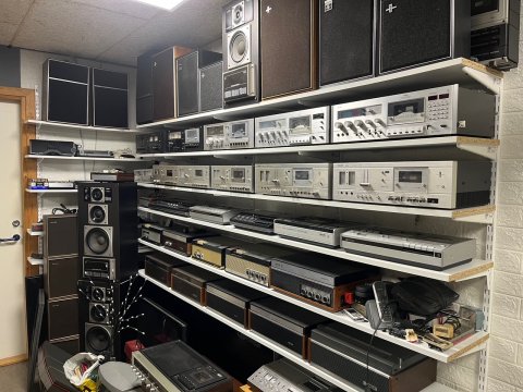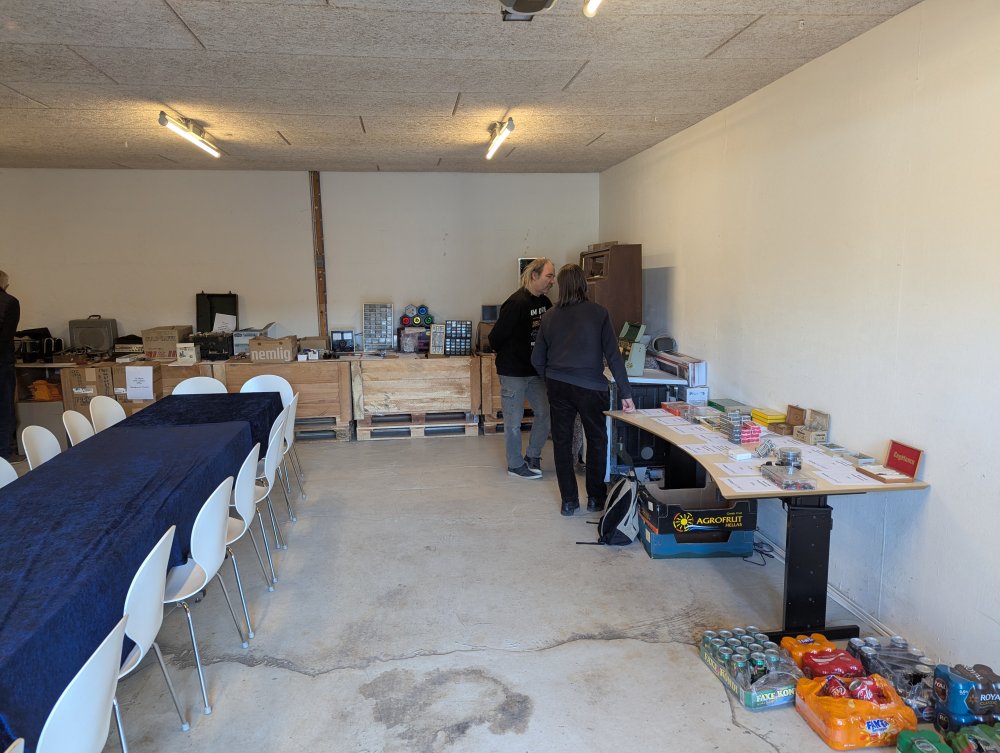 Der var loppemarked i en garage. Tommy viste sin store Philips samling som var placeret i den gamle butik.