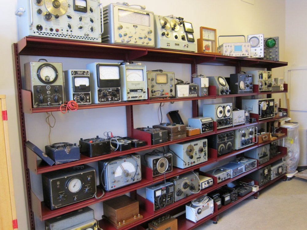 Udenfor kontoret står der en masse instrumenter fra radioskolen.